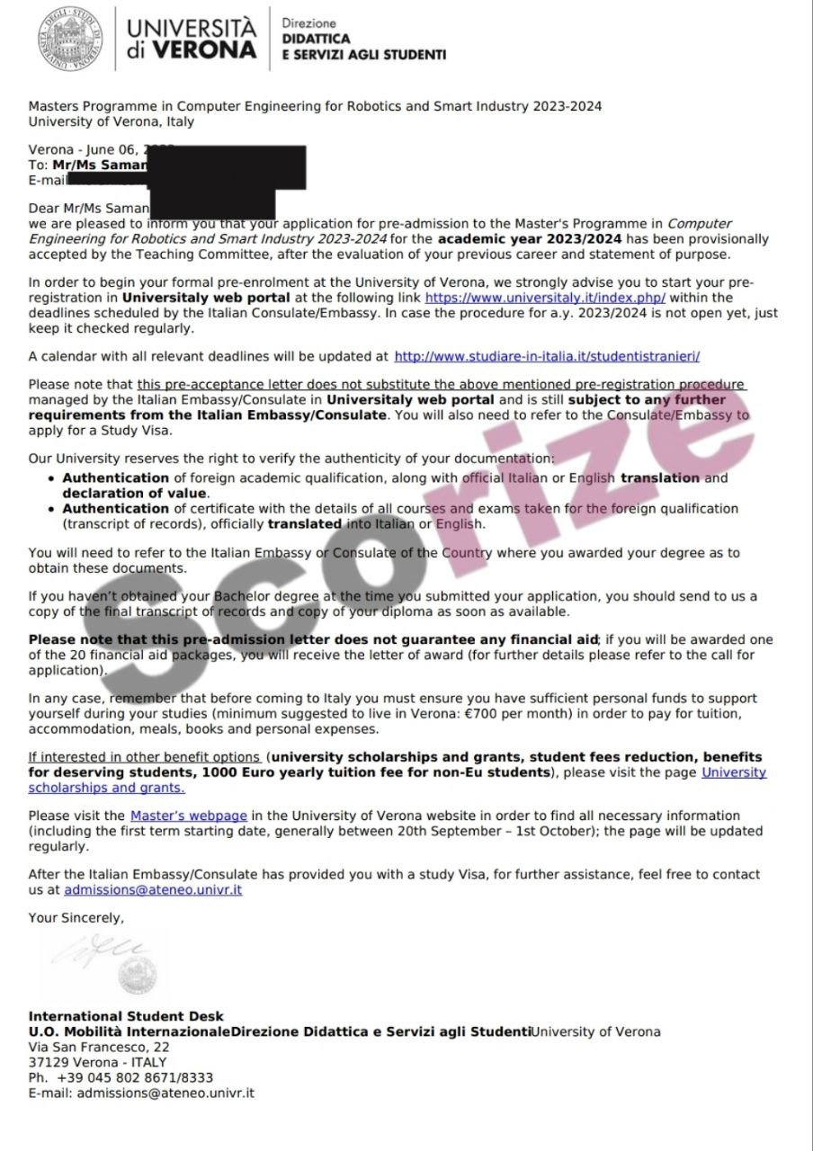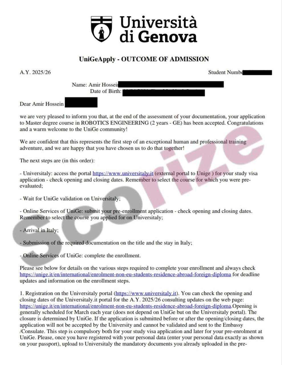 اسکورایز این تضمین را می دهد که برای تمامی کسانی که در این مدت با مجموعه قرارداد امضا کنند، پذیرش همراه با بورسیه استانی اخذ کند، یعنی شما در قبال پرداخت تنها 599 یورو، تحصیل رایگان در ایتالیا به همراه حدود 8000 یورو بورسیه دریافت می کنید. توجه داشته باشید که ظرفیت مجموعه اسکورایز محدود است پس قبل از پرشدن ظرفیت اطلاعات تماس خود را ثبت کنید تا مشاورین شرایط شما را بررسی کنند ... .